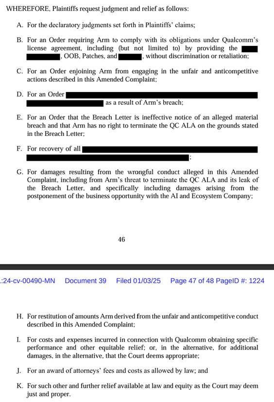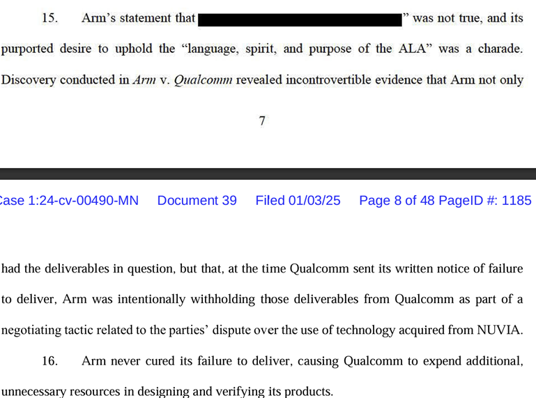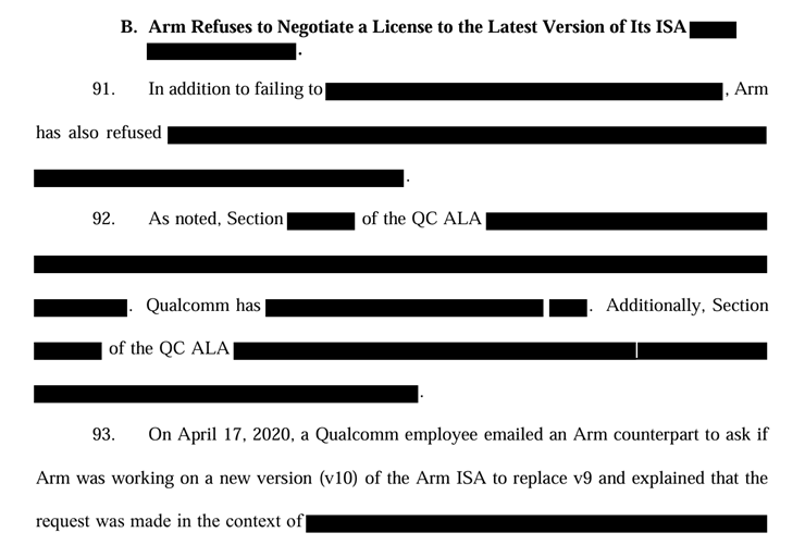 Qualcomm requested an extension until today to file their first amended counter claims against ARM. As expected, the redacted documents did arrive, and I'll provide snippets and some form of biased analysis.