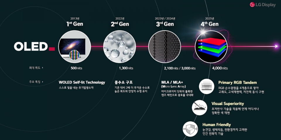 LG Display disclosed this information at the '4th Generation OLED' technology briefing held at LG Science Park in Magok, Seoul on the 16th. The 4th generation OLED refers to 4-stack white (W)-OLED.