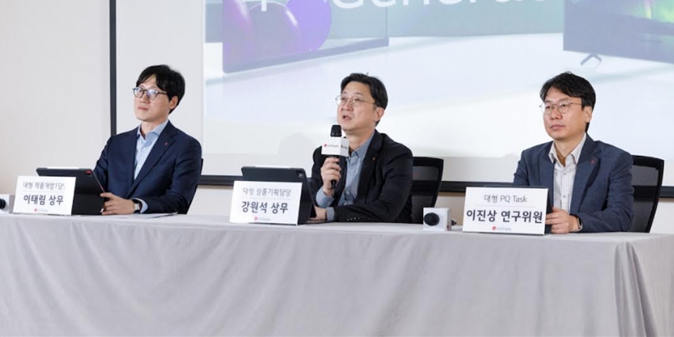 At the 'LG Display 4th Generation OLED Technology Briefing' held at LG Science Park in Magok, Seoul on the 16th, Kang Won-seok, Senior Managing Director in charge of large product planning (center), Lee Tae-rim, Senior Managing Director in charge of large product development 1 (left), and Lee Jin-sang, Senior Researcher of Large PQ Task (right) are answering questions. (Data = LG Display) The Elec = Reporter Lee Gi-jong gjgj@thelec.kr «The Elec, a specialized media outlet for semiconductors, displays, batteries, battlefields, ICT, games, and content»