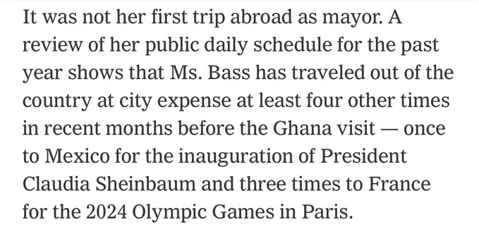 But she was in Africa during the wildfires, she was recently in Mexico for their Presidential inauguration, and she went to Paris 3 times for the Olympics.