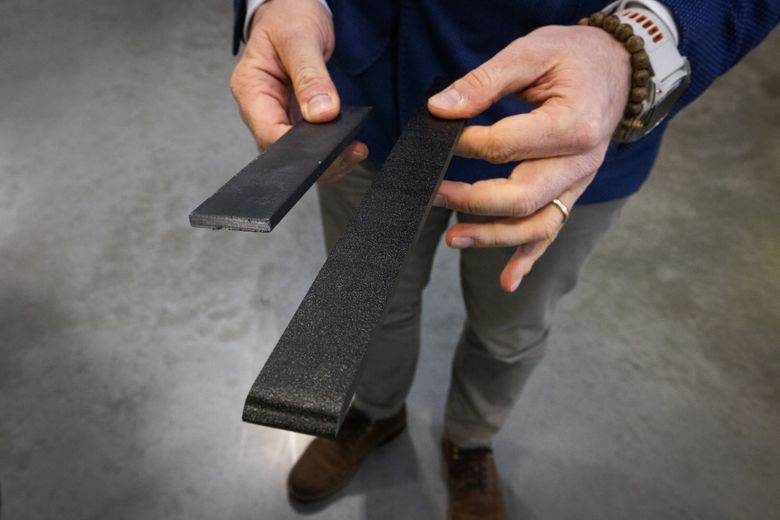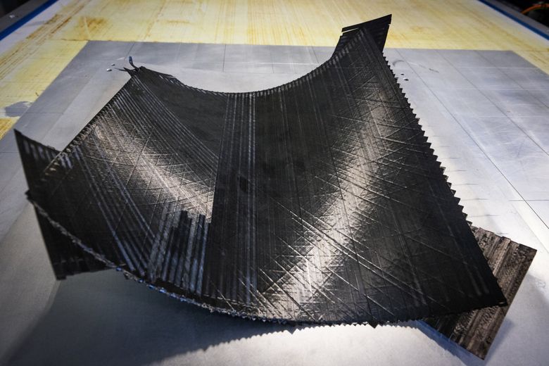 1 of 2 | A composite material sample made by a robot is seen at the University of Washington’s Advanced Composites Center. (Ken Lambert / The Seattle Times)