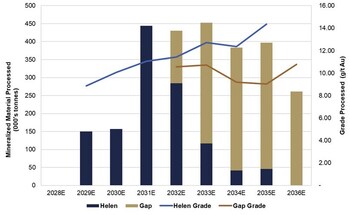 - Updated mineral resource estimate resulting in an indicated gold mineral resource of 311,000 oz at 8.2 grams per tonne ("g/t") and an inferred gold mineral resource of 1.16 Moz at 8.9 g/t.