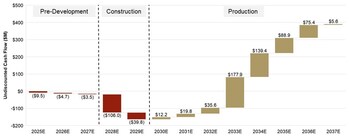 - Mine Construction capital estimated at $157 million, nearly 60% of which is earmarked for dewatering activities.