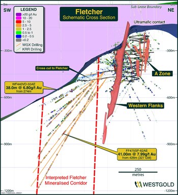 Figure 4 – Schematic cross-section showing the scale of Fletcher zone. (CNW Group/Westgold Resources Limited)
