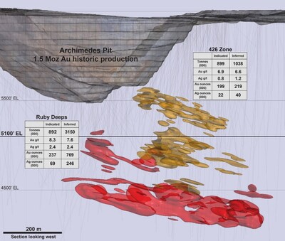 - All drilling conducted within the Archimedes underground area since the property's acquisition in 2021, is included in the PEA. Additional infill drilling is expected to be completed from the underground on the Ruby Deeps and the 426 zone in 2027 to be included in a planned feasibility study in 2028.