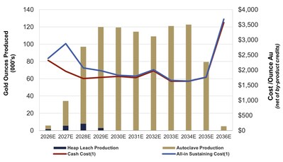 - Estimated LOM cash costs(1) of $1,769 per ounce and all-in-sustaining costs(1) of $1,893 per ounce.