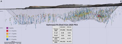 - Updated mineral resource estimate resulting in an indicated gold mineral resource of 3.4 million ounces at 0.48 grams per tonne ("g/t") and an indicated silver resource of 104.3 million ounces at 15.0 g/t.