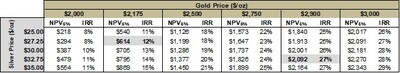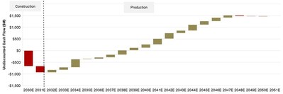 - Based on a $2,175/oz gold price, the Project's undiscounted after-tax cash flows(3)(4) total $1,470 million with an after-tax net present value(3)(4)("NPV") of $614 million, assuming a 5% discount rate, generating an 12% internal rate of return ("IRR").