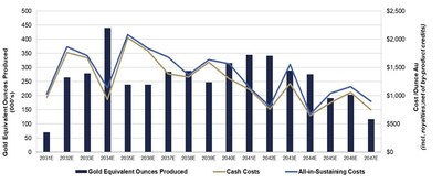- Estimated LOM cash costs(2) of $1,270 per ounce and all-in-sustaining costs(2) of $1,400 per ounce.