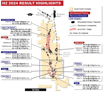 Figure 1: South Carlin Complex drill results, H2 2024. (CNW Group/Orla Mining Ltd.)