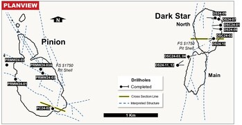Figure 2: Dark Star and Pinon 2024 drill holes. (CNW Group/Orla Mining Ltd.)
