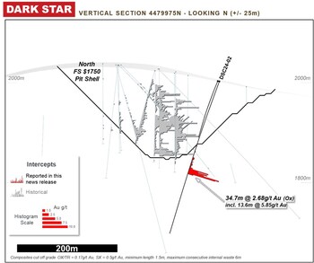 34.7 m at 2.68 g/t Au, incl. 13.6 m at 5.85 g/t (Oxide) – Dark Star