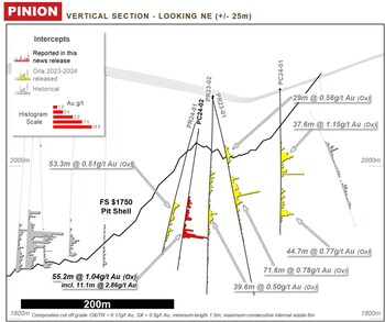 Figure 6: Pinion vertical cross section, looking northeast (CNW Group/Orla Mining Ltd.)