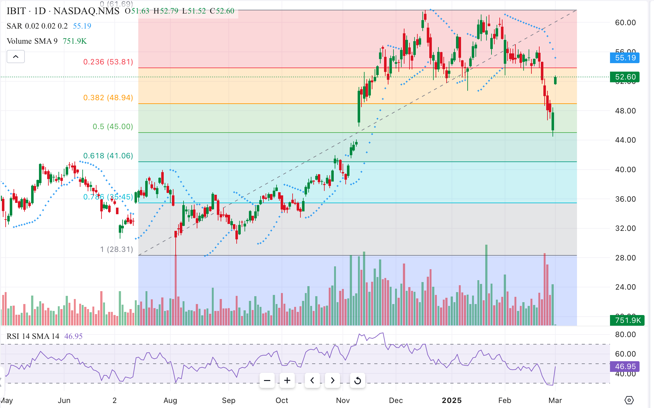 IBIT on Friday completed the 50% retracement of the rally (from the low in August of last year) - and bounced off. Looks promising.