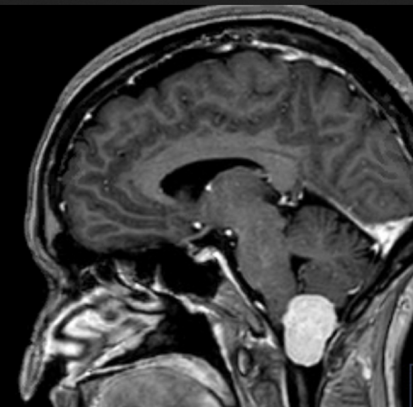 - A tumor or other pathology, though this would require further evaluation by a radiologist or neurologist to determine its nature (benign or malignant, size, etc.).