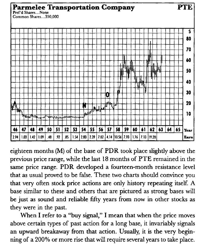 I use position sizing of 5% per position with no stops and cast a wide net so no dog can wreck my portfolio because I have many other stocks that can make up for the duds. I did the math and hypothetically if you averaged a 200% or more gain on your winners (what Ted says in his book that you should average on long-term base breakouts) and worst case scenario you average a 100% loss on your losers, you'll breakeven if you're right a third of the time. If you're right more than a third of the time you're profitable, and if you're right 50% of the time or more you'll make a lot of money. I focus primarily on long-term base breakouts like the ones in the examples and will only buy breaks above a gradual downtrend line if there's already a long-term base formed and I'm either buying within the long-term base or a breakout out of a long-term triangle base.