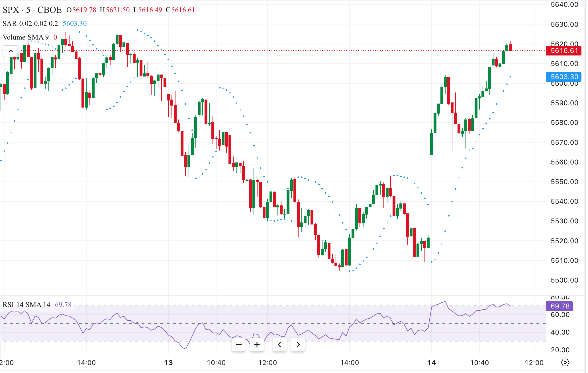Here’s a cute little wiggle impulse out of yesterday’s low. It’s on 5min, but can be seen clearly on 15 and 30 as well. If it consolidates and then breaks upwards - that would be our C (or 3). I’d probably trade it, for a swing. And then, we’ll see.