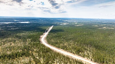 Figure 1: Shaakichiuwaanaan Exploration Camp (CNW Group/Patriot Battery Metals Inc.) Figure 2: A portion of the all-season road (~20 km in length) built by the Company, extending from the all-season Trans-Taiga Road to the CV5 Spodumene Pegmatite. (CNW Group/Patriot Battery Metals Inc.)