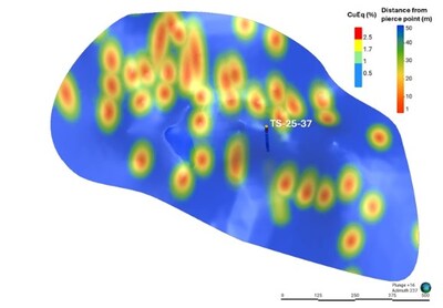 - Hole TS-25-37w1 is located 65m down-dip of TS-25-37 where it also intersected similar thickened lenses of massive and semi-massive sulphides and associated stringer and breccia zones. Assays are pending for this hole and further analysis is required to confirm the significance of any mineralization therein.
