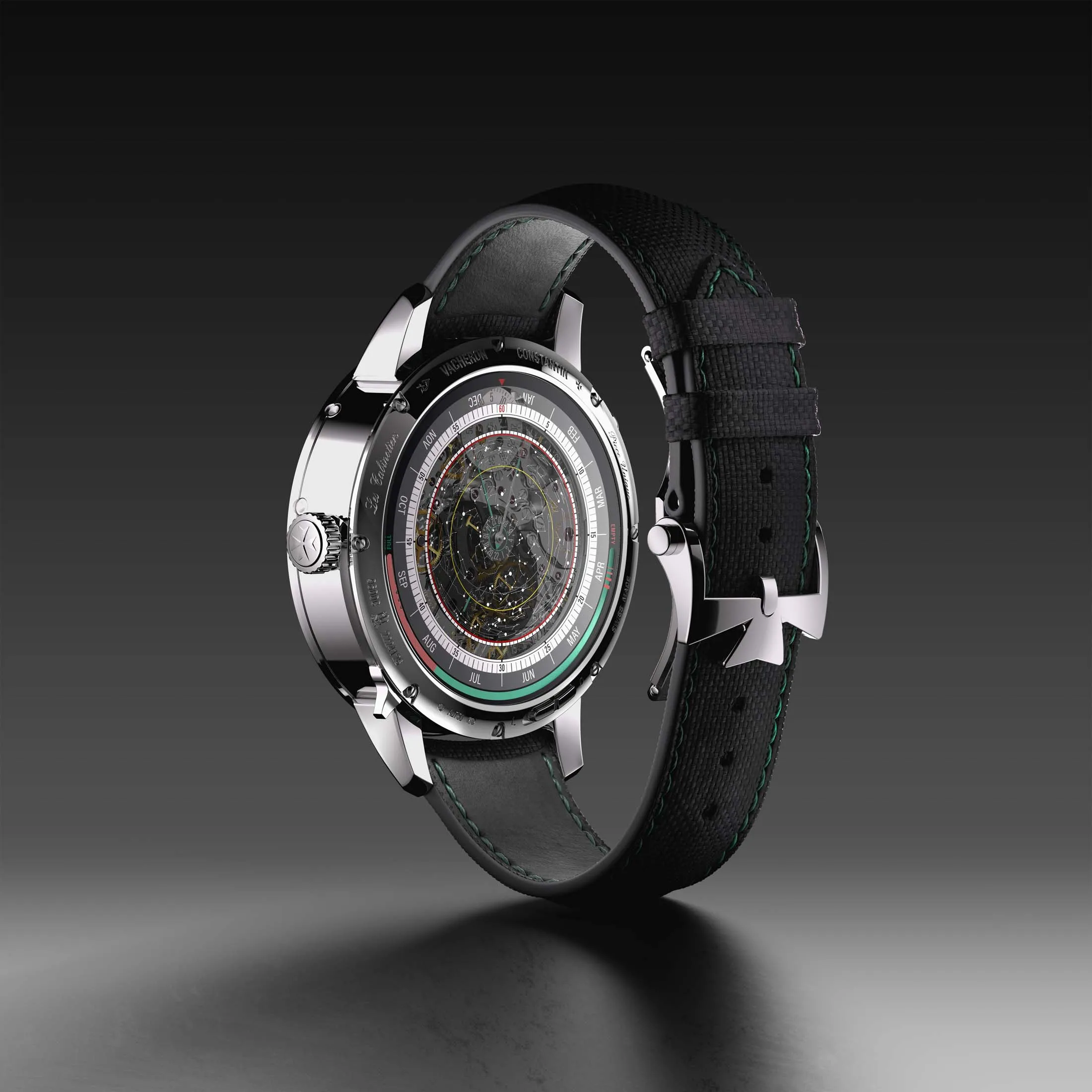 The incredibly complex movement was engineered and assembled by one master watchmaker, who remains anonymous.Source: Vacheron ConstantinThere are also five highly specialized astronomical complications (among the 14 astronomical complications on the watch) with three patents pending that offer information about the path of the sun. One innovation is a world-first: a celestial sky chart that lets the wearer locate when a specific star or constellation will appear in the night sky. This temporal tracker is linked in the mechanism to the watch’s split-seconds chronograph (that allows for timing multiple events with different end times) and the subject of one of the patent applications.