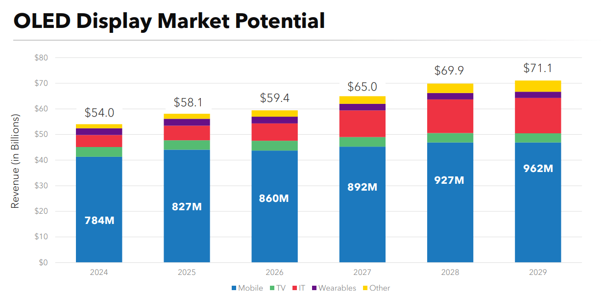OLED investor presentation FY 2024 IR (OLED investor presentation FY 2024 IR) And this doesn't even include things like automotive OLED/Lights TVs, AR/VR, and other IT products, like screens. I myself bought an OLED gaming monitor not long ago, and I could not be happier. I consider it “game changing” for me.