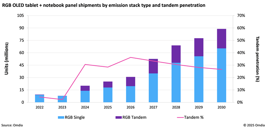 Omdia: Tandem penetration forecast to reach 36% share of OLED tablet and notebook panel market in 2026