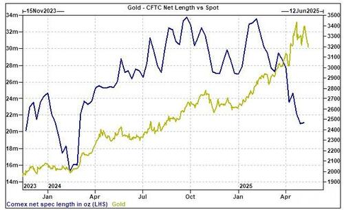 3. In the meantime the West is still not in the trade with CFTC Net length at Q1-2024 levels, when Gold was $1000/oz cheaper.