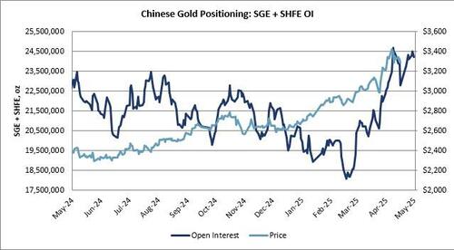 2. Chinese Positioning remains in the driving seat with close to 9mm ounces OI increase on SGE + SHFE since March 2025.