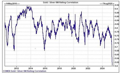 Six weeks after Liberation Day, Gold briefly dropped as low as $3150/oz - down 10% from record highs just a few weeks earlier - in a world where headline risk remains ubiquitous, correlations are broken, and Asia is still in the driving seat.