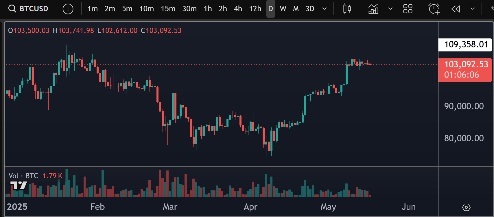 Watching BTC for an ATH breakout from a nice cup and handle. Potential target is north of 120k.
