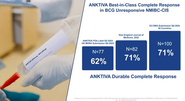 Second, the competitive landscape for Anktiva is shifting. Johnson & Johnson ( JNJ) is currently conducting phase 3 trials for Tar-200, which would compete directly with Anktiva.  What's more,  Tar-200 has shown superior trial readouts, with response rates in the  80s, vs the 60-70s response rates for Anktiva as shown above.  Additionally, side effects for Tar-200 are also generally milder than  Anktiva. With an  annual cost of treatment at $429k, this makes Anktiva ripe for disruption.