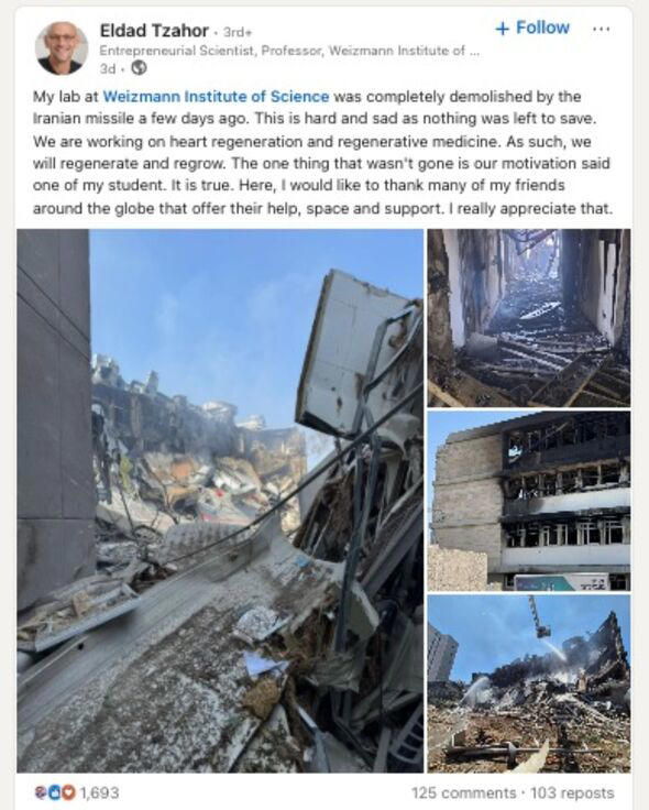 Iran attack destroys $50m science lab© Eldad Tzahor/LinkedIn