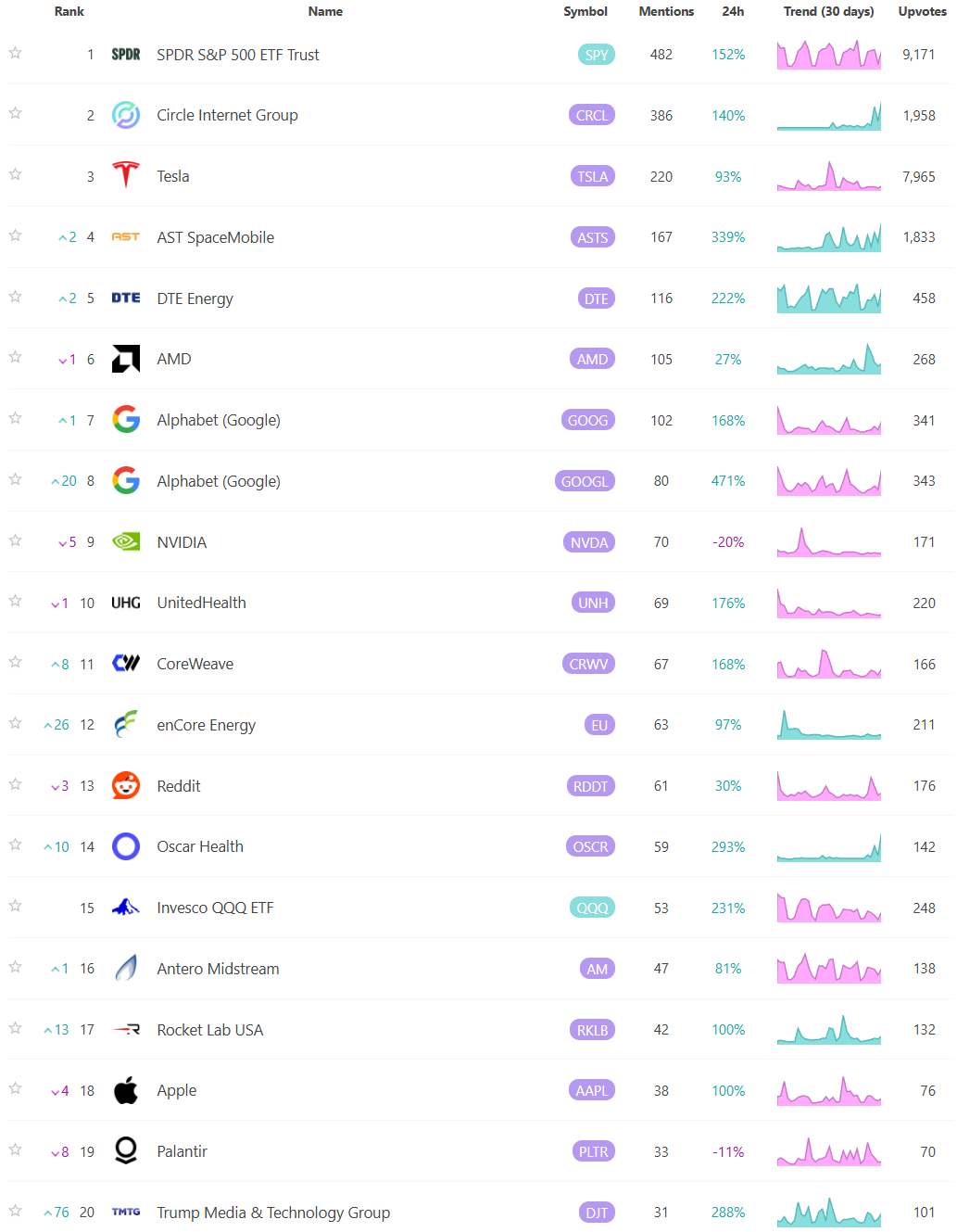For these reasons, sentiment analysis, when combined with other tools, can provide a comprehensive view of both immediate market reactions and underlying investor attitudes, helping investors position themselves strategically across various time frames. Here are the most mentioned/discussed tickers on Reddit from some of the most active Subreddits for trading: