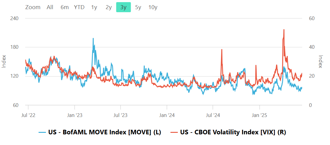 Volatility PatternsMarket volatility remained surprisingly contained given the breadth of fundamental uncertainties affecting asset prices. This compression likely reflected several factors, including options-related hedging, institutional risk management practices, and possibly market maker inventory management strategies.