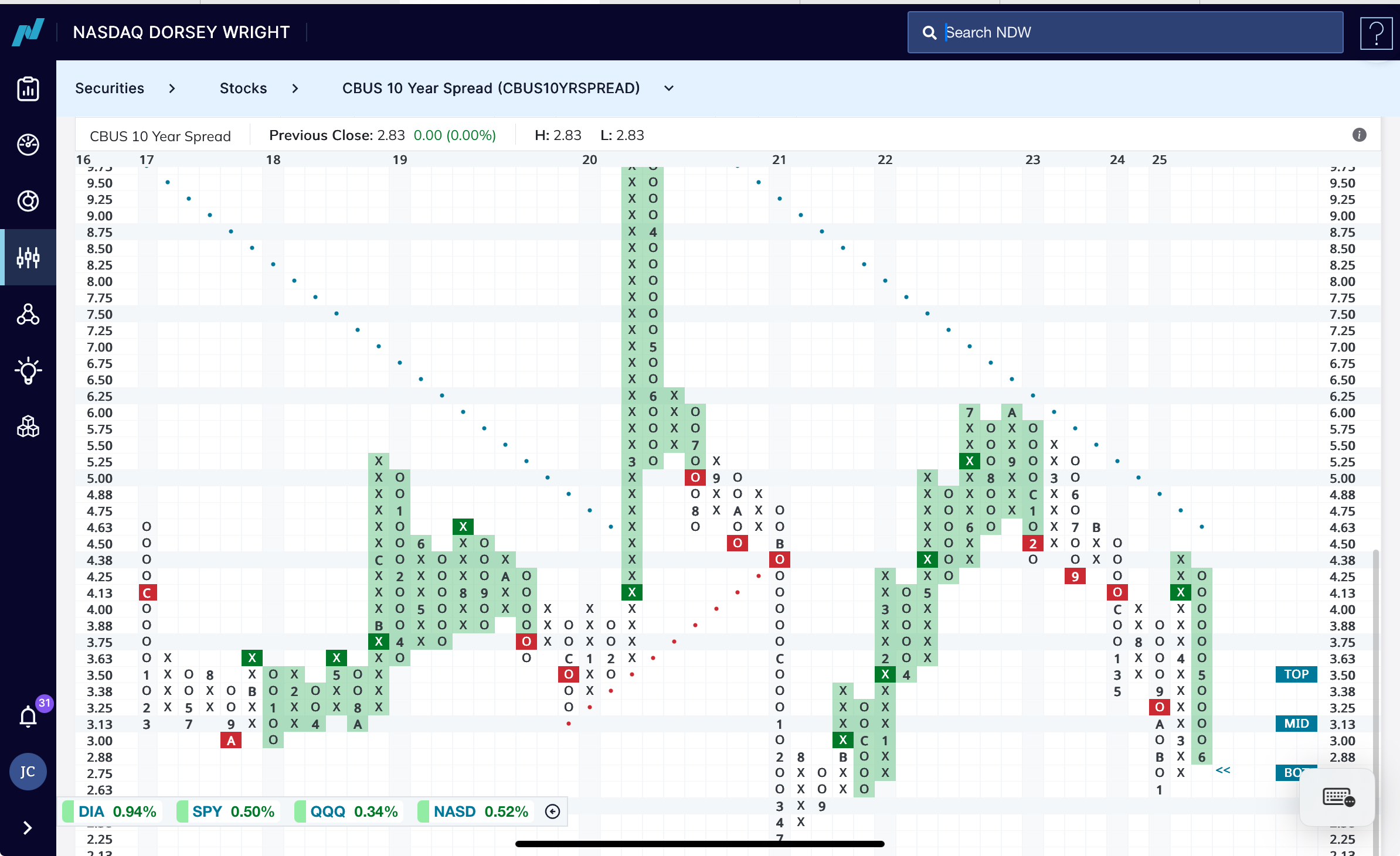I’ve mentioned the CBUS 10 year spread before on this thread. You want this in a downtrend, you want this in a column of O’s. It would be great if it generates a new sell signal.