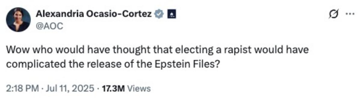 However, feral intelligence is very different from either knowledge or wisdom. AOC’s decision-making and values show that she has severe knowledge and wisdom deficits, something she revealed yesterday when she used her personal X account to call Trump a “rapist,” setting herself up for a very costly defamation action. We know this is true because of the $15 million ABC agreed to pay Trump based on George Stephanopoulos’s calling Trump a “rapist.”