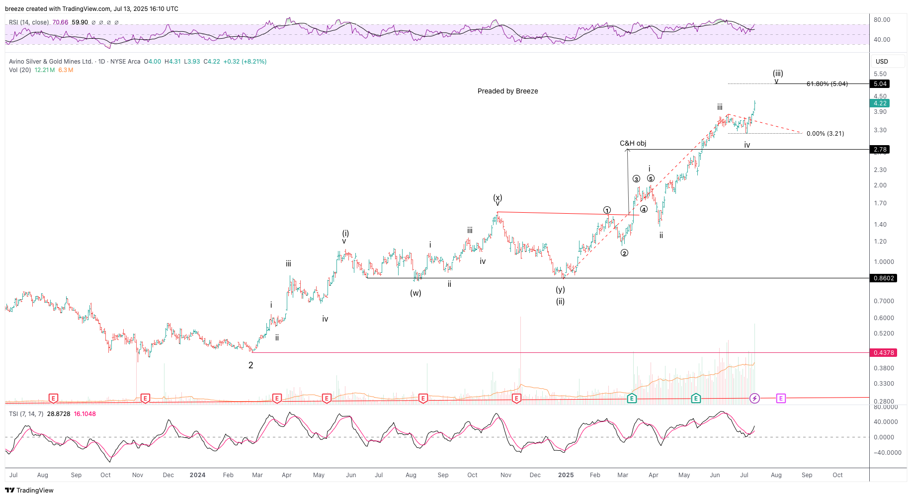 ASM Wave Count Update. Wave v of Wave (iii) is in play with a target of 5.04. Breeze