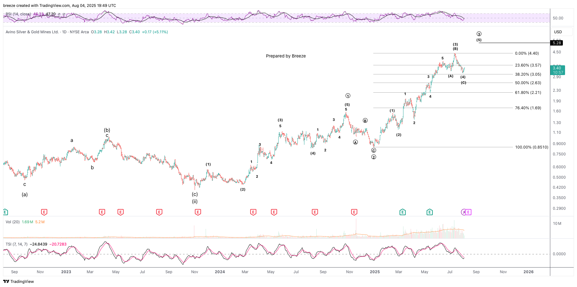 ASM Wave Count Update. Sub-microwave (3) of Microwave (circle) 3 is in play with a target of 5.28. Breeze
