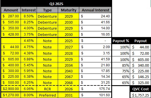 I/we can only speculate what would entice each group to accept but I think getting over 50% value is what may work. In total this would cost QVC $1,757.25M leaving them with only $114.75M in cash left. Now this should also give them an estimated ~$388.75 on gain on extinguishment of debt for their books and would be taxable. The cash left though is far too low as they need to again support working capital and fund growth into social as cable continues to decline thus they may need to go lower on what they offer to leave a cash pile left to fund the business and I struggle to see who takes more loss of these seven players. There is also consent fees, transactions costs, and whatever else I am forgetting that may increase this.