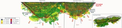 Figure 1: Long section of Côté and Gosselin conceptual super pit  (Source: IAMGOLD Q2 2025 Presentation) (CNW Group/Metalla Royalty &  Streaming Ltd.)