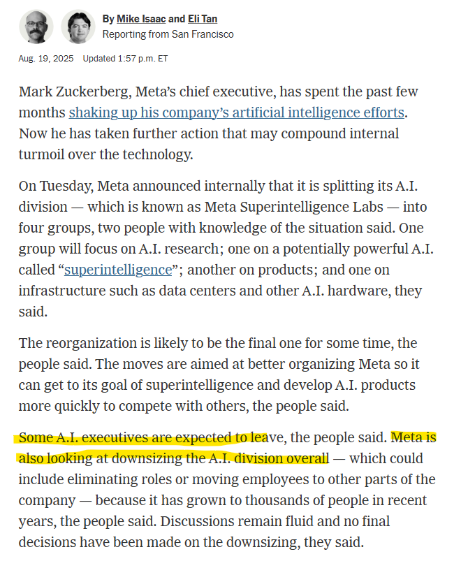 On the topic of bears I find myself fascinated by the AI moves. It was just yesterday META was rebranding to pivot their company into the Metaverse only to quickly abandon that and move into AI. They were paying large sums of money (rumored $100M bonuses) to poach engineers from OpenAI.