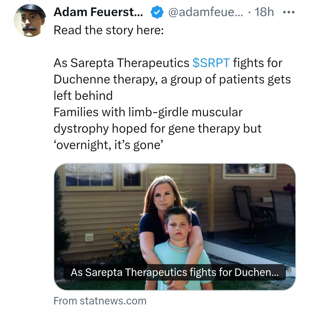 In a related story, AF is now blaming Sarepta for ruthlessly halting its other two LGMD trials. Boy does this pig love to slop around in the muck on both sides of the fence: