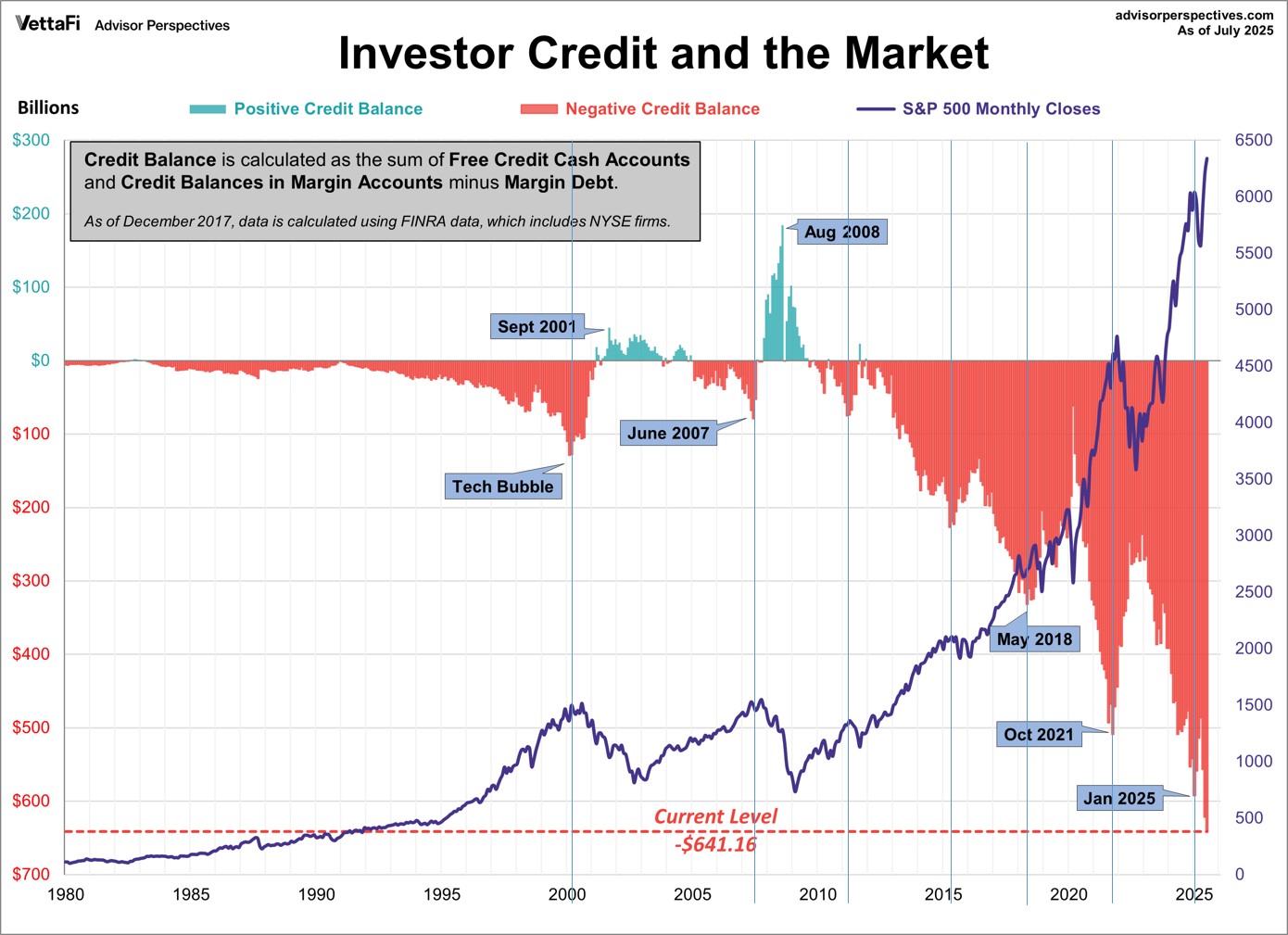 The latest margin debt and investor credit data are in for July, from advisorperspectives.com