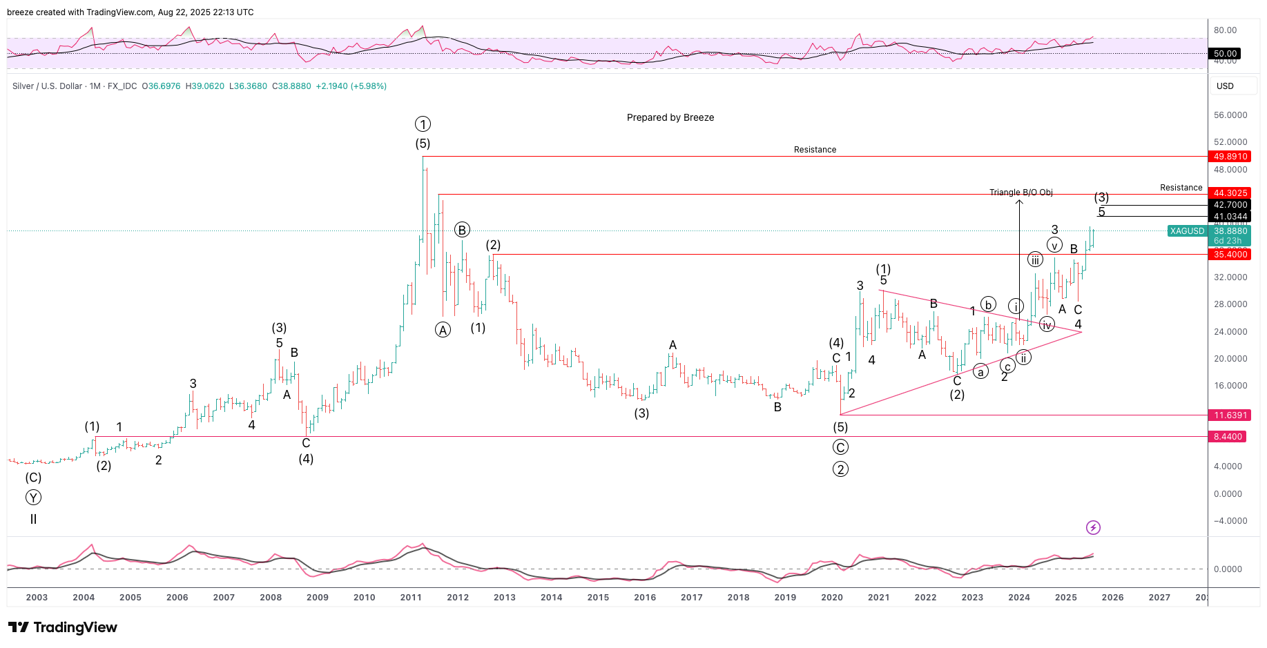 Goldilocks, here's a Spot Silver Wave Count on a Month Chart from the end of the year 2002. Breeze