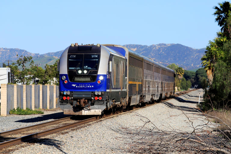 Amtrak Pacific Surfliner Train from San Diego to San Luis Obispo: Simi Valley, California, USA - April 06, 2025. Getty Images© Getty Images