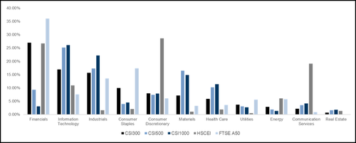 CSI1000 has only ~10% weights in traditional sectors such as Financials, Real Estate, Energy and Utilities, while Tech Hardware & Software and Health Care account for 25% and 12% of CSI1000.