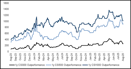 SMID cap indices also have more balanced sector weights, and higher exposure to high-tech manufacturing areas aligned with strategic policy directions (15th Five Year Plan coming out in Oct).