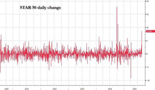 The SSE STAR50 (tech/innovation board also called the Chinese equivalent of the Nasdaq) surged 8.6% on the day, the 3rd largest daily gain since inception