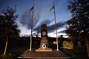 This is a cenotaph at Oakville, Ont.’s St. Volodymyr Ukrainian Cemetery honouring the Galician Division, which it refers to as the First Ukrainian Division, Ukrainian National Army. It’s one of two monuments in Canada (the other one is in Edmonton) paying homage to a division of the Waffen-SS. Photo by Peter J. Thompson/National Post