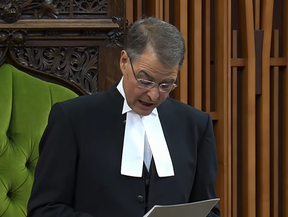 This is House of Commons speaker Anthony Rota as he introduced a former member of the Waffen-SS, Yaroslav Hunka, as a “Canadian hero” during the visit of Ukrainian President Volodymyr Zelenskyy. This image catches Rota as he raised an eyebrow and took a slight pause just after saying that Hunka had fought against “the Russians” during the Second Word War – and more than one observer has speculated that this is the precise moment that Rota realized he had brought a Nazi to Parliament. Photo by CPAC screenshot